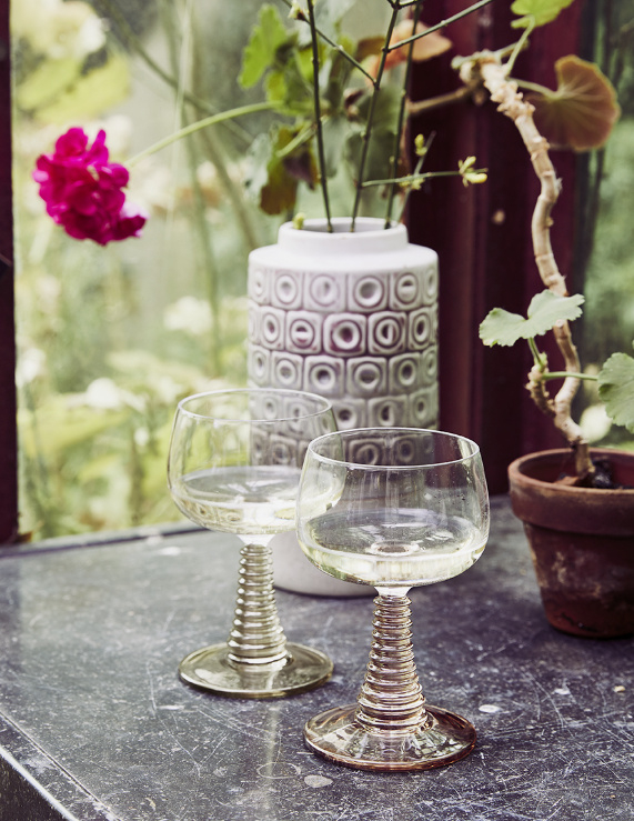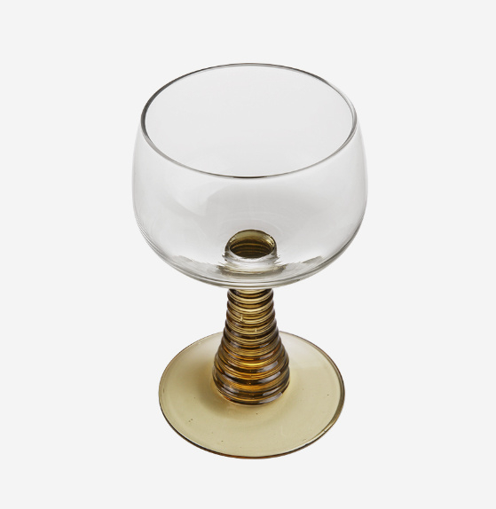 Handgeblazen swirl wijnglas met een massief groene glazen voet. Valt direct op en geeft het glas een speelse uitstraling. Zo kun je nog meer genieten van je wijn of een ander drankje.