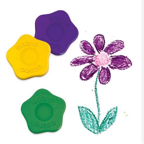Artikelnummer: DJ09005Deze mooie krijtjes in de vorm van een bloem liggen goed in de kinderhandjes en daarom geschikt voor kinderen vanaf 18 maanden. Maar ook de wat grotere kindjes willen er graag mee kleuren (eigen ervaring)