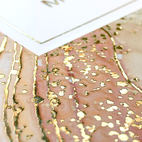 Preeg en afwisselend goudfolie, rosé goudfolie en gevlekte goudfolie