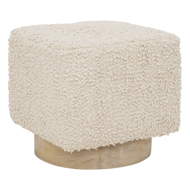 Een van de vele eyecatchers is de Kaura poef. Hij is met de hand gemaakt en combineert een sterke en ronde voet van mangohout met een gepatineerde afwerking met een zitting in een onregelmatig, los, ruig weefsel. Het ontwerp van de zitting is vierkant met afgeronde hoeken.