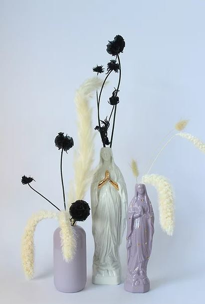 Alle vaasjes zijn volledig handgemaakt van porselein met gouden details van 24k goudluster. De vaasjes zijn voorzien van een glazende laag glazuur en zijn waterbestendig maar niet geschikt voor de vaatwasser.