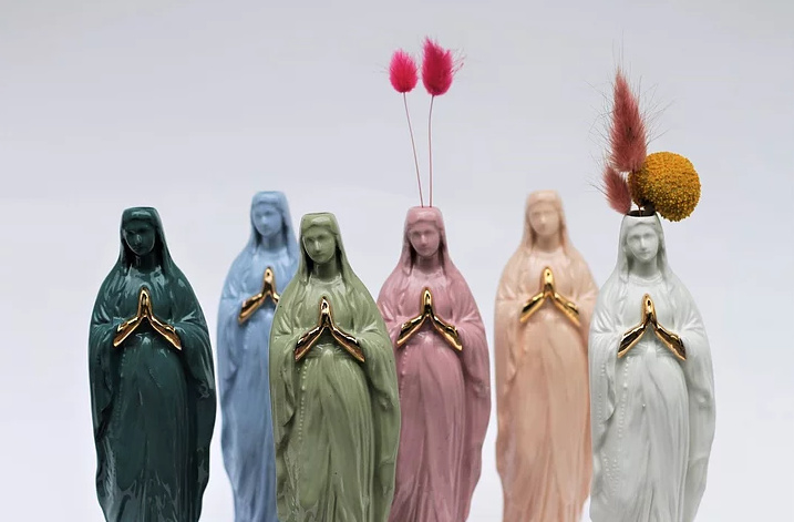 De Maria's Maria's zijn voorzien van gouden hartjes over het hele lijftje.