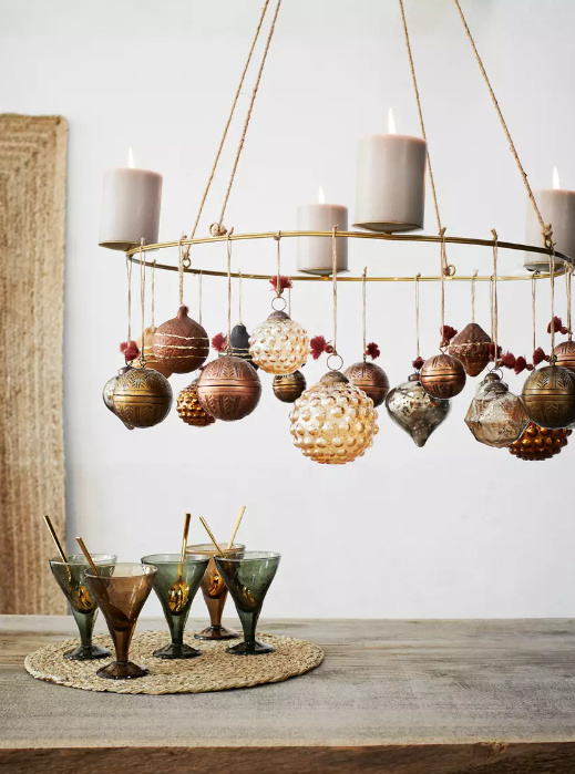 Madam Stoltz Hanging glass ball with dots | orange luster