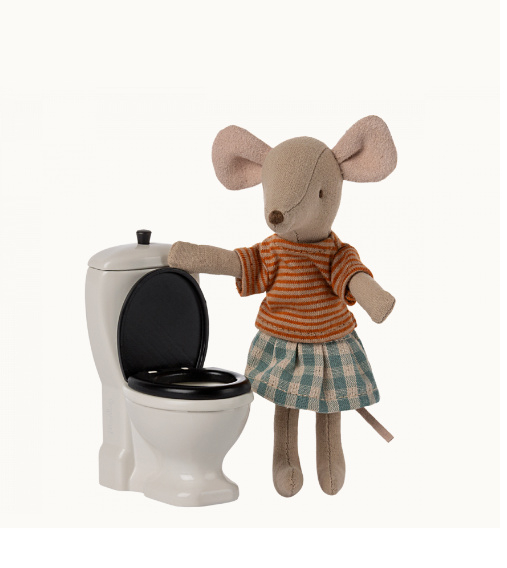 Artikelnummer: 11-3112-00Er is een toilet toegevoegd aan het badkamerassortiment. Hij is prachtig uitgevoerd in een gebroken witte kleur met een zwarte zitting. Zitting kan open en dicht, en een trekfunctie in het handvat maakt hem heel echt en speels. Het is qua formaat perfect voor de muizenfamilie.