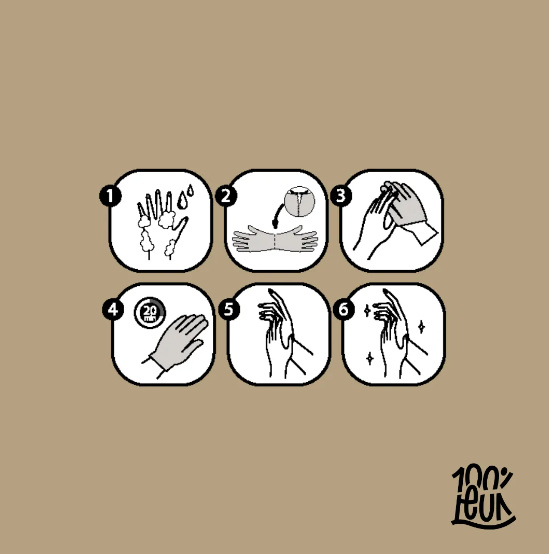 In de verpakking zit 1 paar handschoenen en is voor eenmalig gebruik. Masseer het resterende serum in je huid. Op de achterkant van de verpakking staan de stappen uitgelegd over hoe je het handmasker het beste kunt gebruiken.