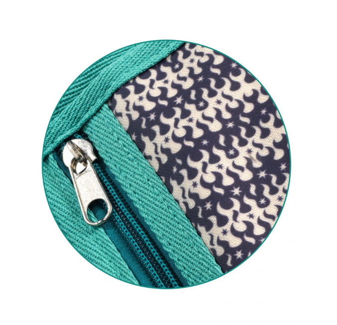 Inhoud: 1 portefeuille met klittenband van geplastificeerd katoen met ritssluiting (13,5 x 9,5 x 2 cm).