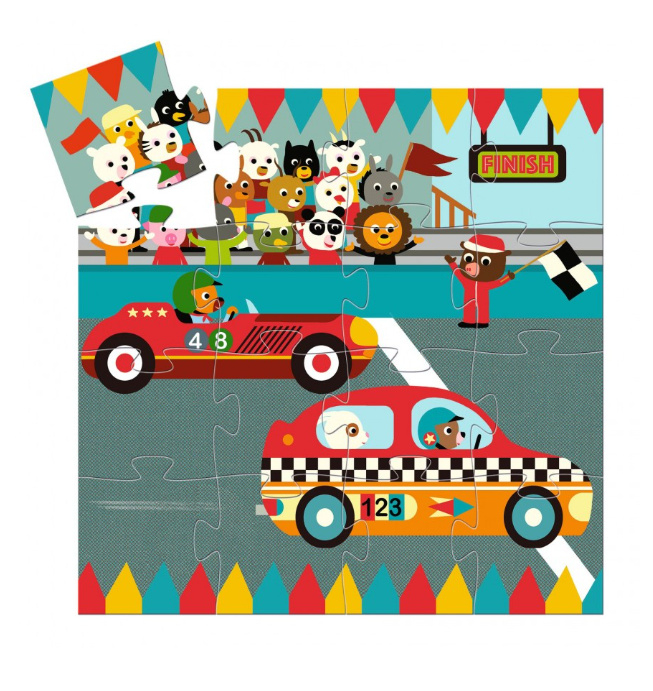 Artikelnummer: DJ07273De auto start met een knal en komt als eerste over de finish! Deze kleurrijke puzzel van 16 stukjes wordt aangeboden in een mooie doos in de vorm van een raceauto.