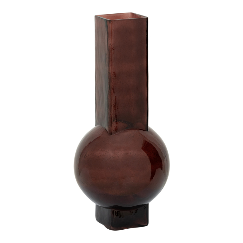 Deze handgemaakte vaas, gemaakt van gerecycled glas, is een exclusief ontwerp voor de herfst- en wintercollectie van Urban Nature Culture van 2024 en is gemaakt in twee prachtige kleuren: fudge of rustiek bruin.