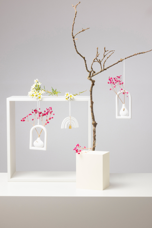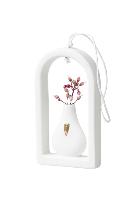 Artikelnummer: 17166Inimieni klein vaasje in een omlijsting. Het vaasje kan opgehangen worden doordat er een mooi wit koord is bevestigd.