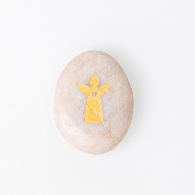 In de opmerkingen kan je aangeven of je een hart, een klavertje of een engeltje wilt. De kleuren variëren tussen zandkleurige, licht- en donker grijze stenen. We zoeken de mooiste voor je uit.
