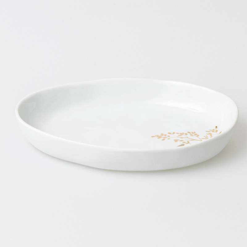 De schaal is voorzien van relief en een gouden tak met vogeltjes.