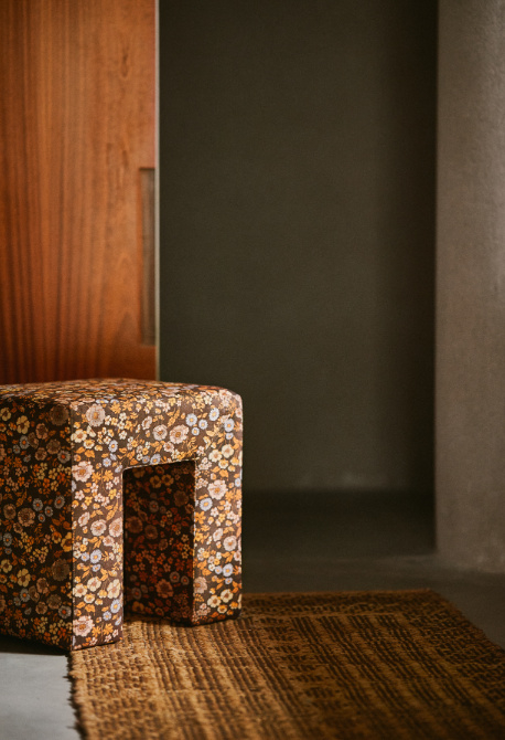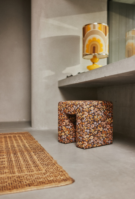 Een voorbeeld van veelzijdigheid met zijn compacte formaat en opvallende ontwerp, dit stuk is perfect voor kleine, intieme ruimtes of als opvallend accent in grotere kamers. De opvallende print is ontworpen om elke ruimte te voorzien van de levendige essentie van een bloeiende tuin. De bekleding is gemaakt van de beste materialen voor duurzaamheid en zorgt voor een comfortabele zitervaring. Of je hem nu gebruikt voor een korte pauze of als onderdeel van een dynamisch zitmeubel, deze kruk is gebouwd om indruk te maken en lang mee te gaan.