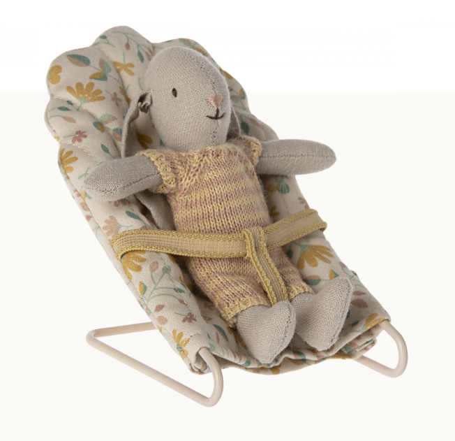 Artikelnummer: 11-4402-00Met deze babysitter is het gemakkelijk om je kleine vriendjes in slaap te brengen. De basis is gemaakt van metaal en bedekt met de mooiste stof. De stoel past perfect bij kleine konijntjes.