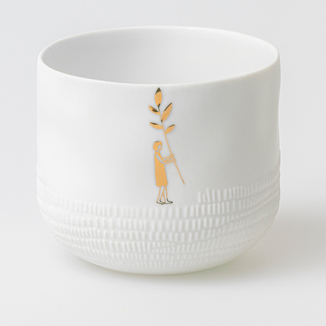 Porseleinen Vaas met als afbeelding een stelletje in het goud en prachtig afgewerkt met bloemen en takken in relief.