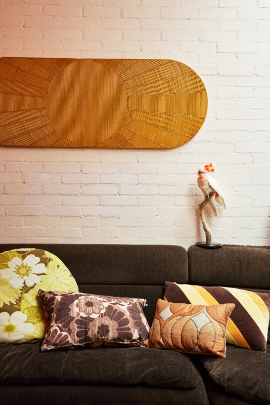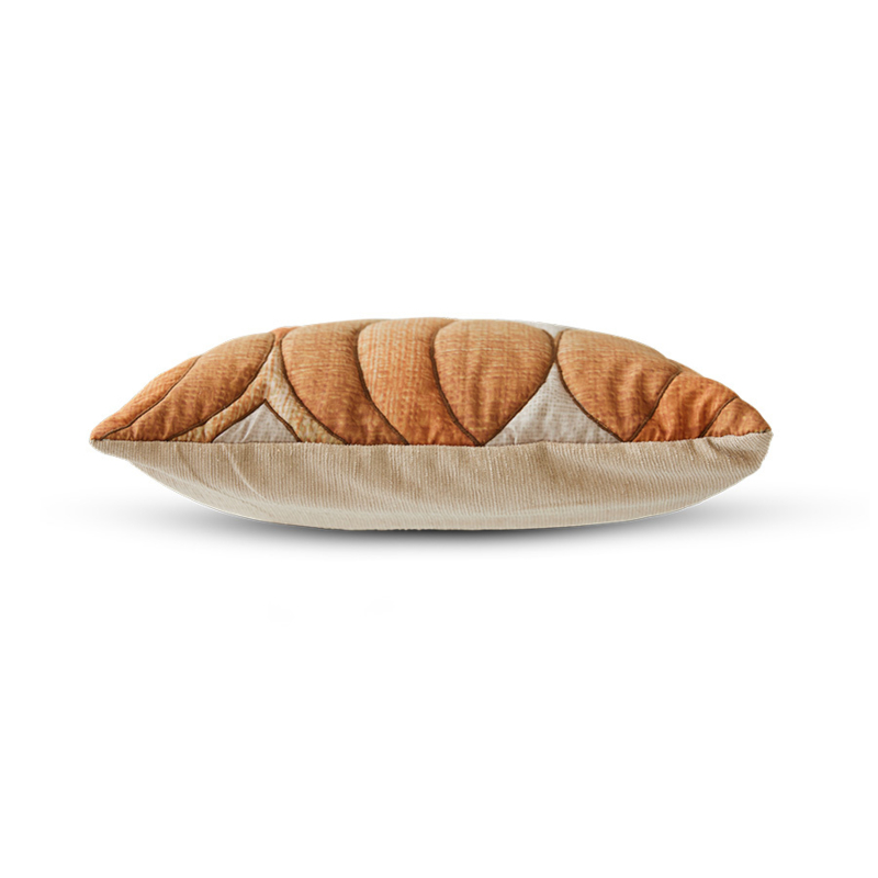 Het gestructureerde oppervlak van het kussen, rijk aan ingewikkelde, gewatteerde details, roept de luxe en gedurfde expressies van de jaren 70 op, waardoor het het perfecte stuk is voor degenen die de combinatie van kunst, geschiedenis en functionaliteit waarderen.