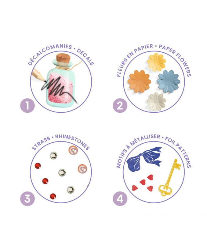 Artikelnummer: DJ09428Het kind versiert elk schilderijtje met transferstickers, papieren bloemen, zelfklevende steentjes en motieven die een metallic glans krijgen. Ofwel 4 keer meer activiteiten voor een resultaat dat 4 keer wonderbaarlijker is!