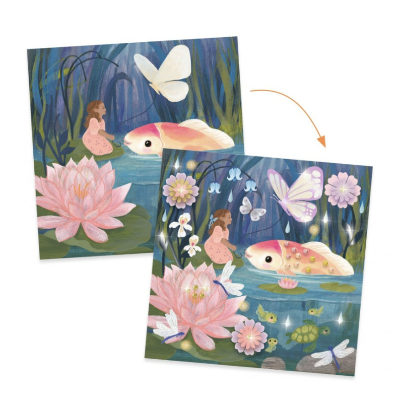 Artikelnummer: DJ09429Het kind versiert elk schilderijtje met transferstickers, papieren bloemen, zelfklevende steentjes en motieven die een metallic glans krijgen. Ofwel 4 keer meer activiteiten voor een resultaat dat 4 keer wonderbaarlijker is!