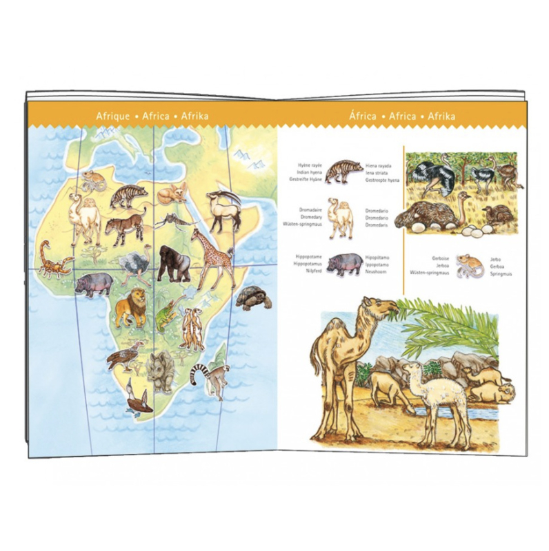 Artikelnummer: DJ07420Ontdek de dieren van de wereld terwijl je plezier maakt! Een puzzel van 100 stukjes, een poster en een boekje om de namen van de dieren te leren en de streken van de wereld waar ze leven.