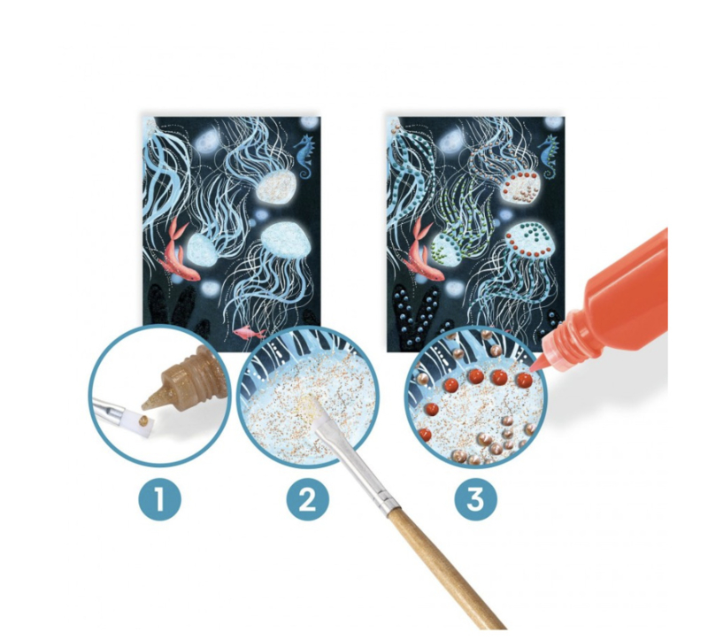 Artikelnummer: DJ08958Een verfactiviteit in 3D met 4 dieren om te versieren. Het kind gebruikt het penseel en maakt lijnen en stippen in reliëf met 3D-verf met glanzend effect.