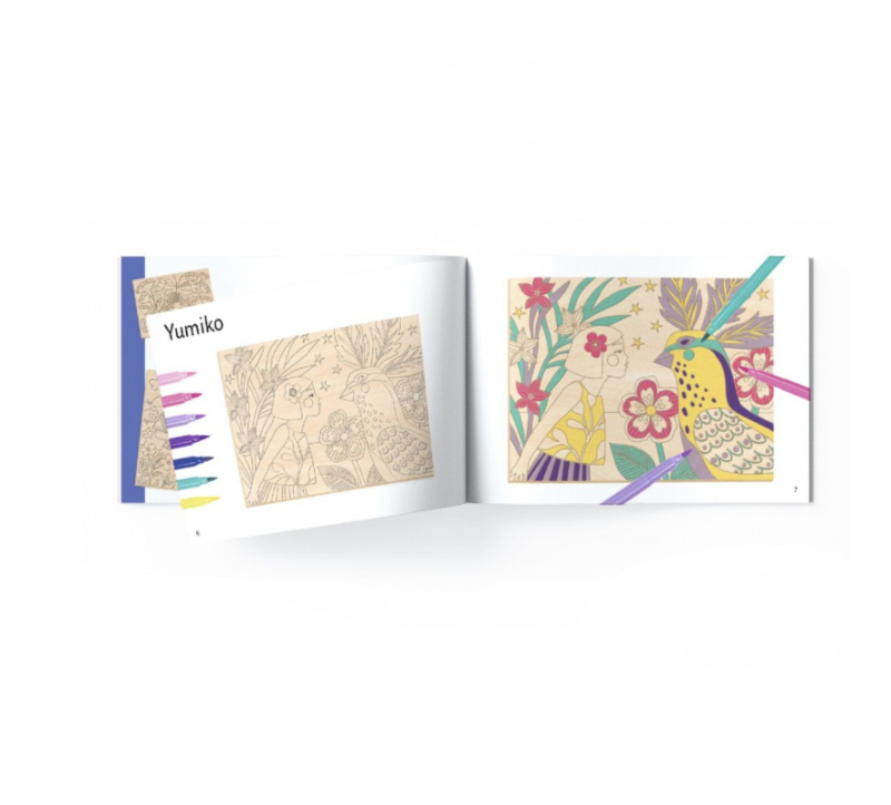 Artikelnummer: DJ08738Een originele kleuractiviteit op houten plankjes. Met de penseelstiften volgt het kind - stap voor stap de aanwijzingen van de kunstenaar om de poëtische illustraties in kleur te zetten. Handig: de groefjes zorgen ervoor dat de inkt goed aangebracht kan worden en niet uitloopt!