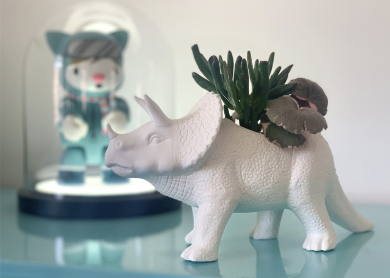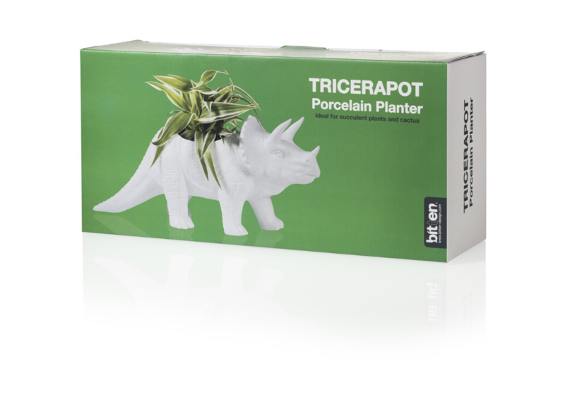 Artikelnummer: 1773De Tricerapot plantenbak is een herbivoor dinosaurus en zal uw planten dus niet terroriseren. Het is het perfecte huis voor al je vetplanten en cactussen. Met een glazen binnenkant om al het vocht binnen te houden, helpt het om uitsterven van uw planten te voorkomen.