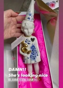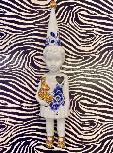 Deze porseleinen popjes, met hun glinsterende gouden details en rode schoentjes, dragen de onmiskenbare signatuur van Lammers&Lammers. Lieflijk, grappig en altijd met een knipoog, stralen ze pure persoonlijkheid uit.