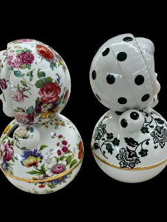 Deze porseleinen popjes, met hun glinsterende gouden details en rode schoentjes, dragen de onmiskenbare signatuur van Lammers&Lammers. Lieflijk, grappig en altijd met een knipoog, stralen ze pure persoonlijkheid uit.