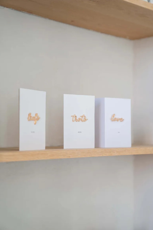 De wenskaart is voorzien van een magneet in de vorm van het woord TROTS.