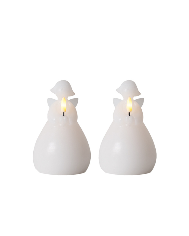 Het engeltje houdt een kaarsje vast waarin een ledlampje zit. Het engeltje is gemaakt van echte wax.