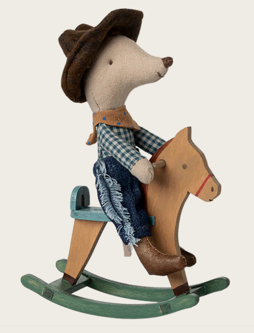 Maileg Cowboymuis op schommelpaard kleine broer