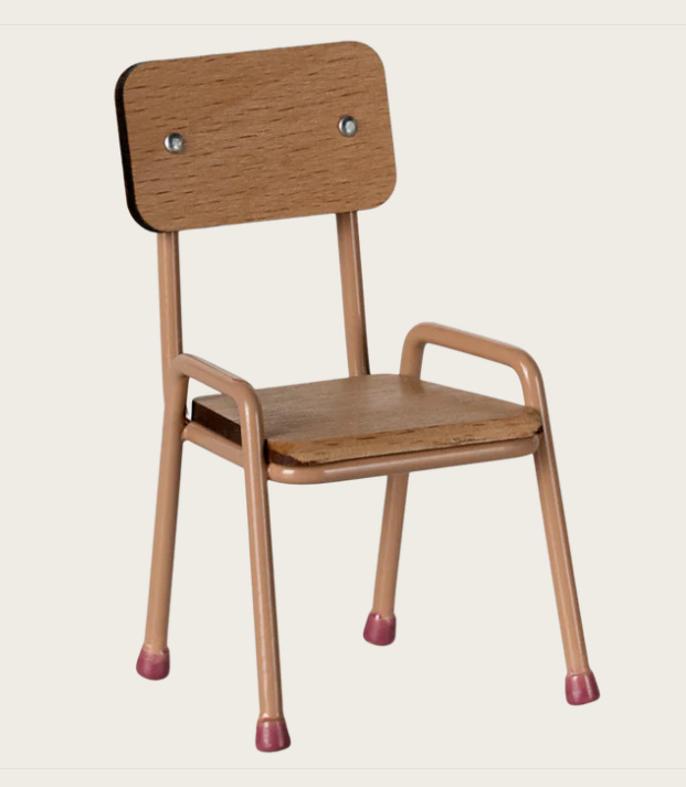 Een stoel die past bij de muizenfamilie en in veel situaties gebruikt kan worden. De stoel is hetzelfde model als in de Tafel- en stoelset voor muizen. Dus als u meer stoelen voor de tafel nodig hebt, hebt u deze nodig. Let op de met de hand geschilderde details op het metaal.