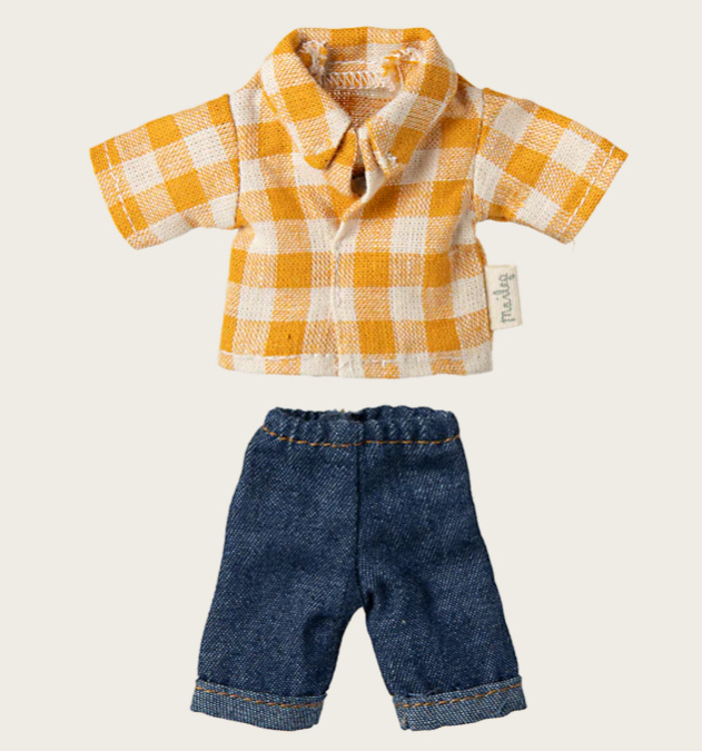 Artikelnummer: 17-5301-00Een klassiek Maileg-item; Vader muis in geruit overhemd en spijkerbroek. Deze papa muis past bij meubels en accessoires in maat Mouse.