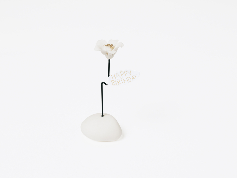 Deze porseleinen bloem op een metalen houder is voorzien van de tekst Happy Birthday. De mooie bloem is voorzien van gouden details.