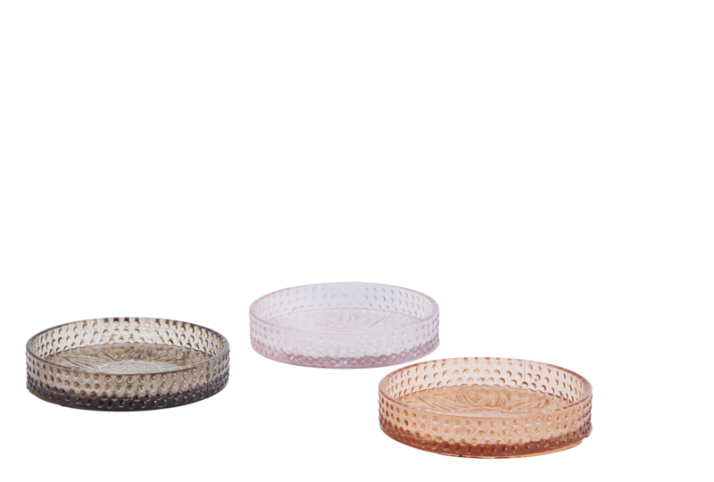 Artikelnummer: EV-19395-OPS_smokeGlazen onderzetter verkrijgbaar in 3 verschillende kleuren en voor veel doeleinden te gebruiken. Bijvoorbeeld als sieradenschaaltje, als kaarsenonderzetter of als serveerschaaltje voor kleine hapjes of bonbons.