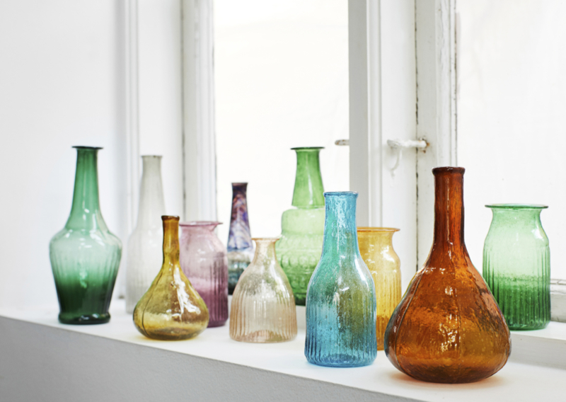 Door gerecycled materiaal en handgemaakt proces zullen de vazen variëren in vorm en kleur.