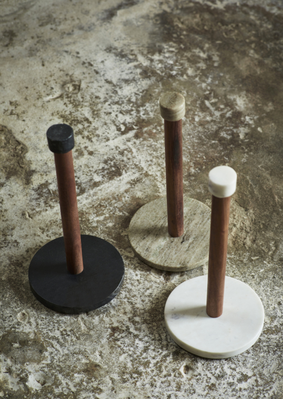 Artikelnummer: KT28774BGEHandige keukenrolhouder die mooi op je aanrecht kan blijven staan, vanwege het gebruik van mooie materialen zoals marmer en acaciahout.