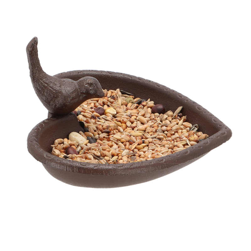 Een hart voor vogels, deze gietijzeren schaal kan zowel met voer als met water gevuld worden, en daardoor vogels een mooie drink of badplaats aanbieden. Een vogel heeft zich al op de rand genesteld, het is aan andere vogels om dit voorbeeld zo snel mogelijk te volgen.