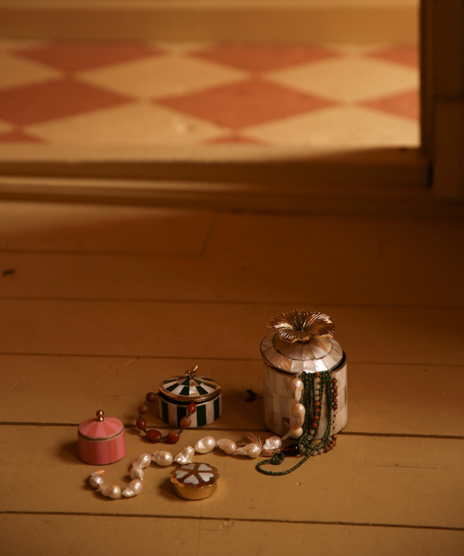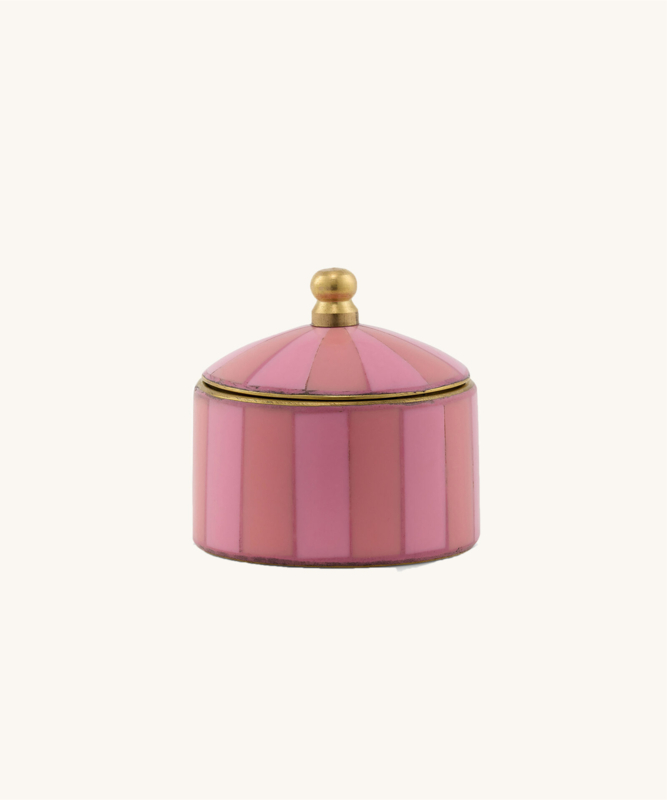 Bewaar uw favoriete edelstenen en juwelen in deze prachtige roze sieradendoos. Met liefde handgemaakt in India, is dit prachtige stuk gemaakt van gerecycled messing en hars, wat ervoor zorgt dat elke aankoop lokale ambachtslieden en hun gemeenschappen ondersteunt. Ga uw gang, voeg een vleugje roze toe aan uw kaptafel!