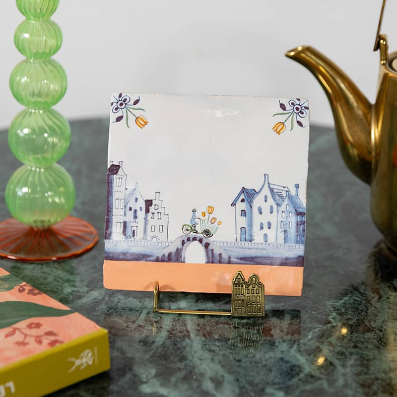Laat je tegeltje shinen in de ‘Golden Holdie’, een gouden houdertje waarin je tegel extra mooi tot z’n recht komt. Er zijn verschillende holdies waar je uit kunt kiezen, allemaal met een ander figuurtje erop. De Golden Holdies zijn handgemaakt door Doing Goods, met aandacht en liefde voor de lokale vakmensen & hun traditionele ambacht.