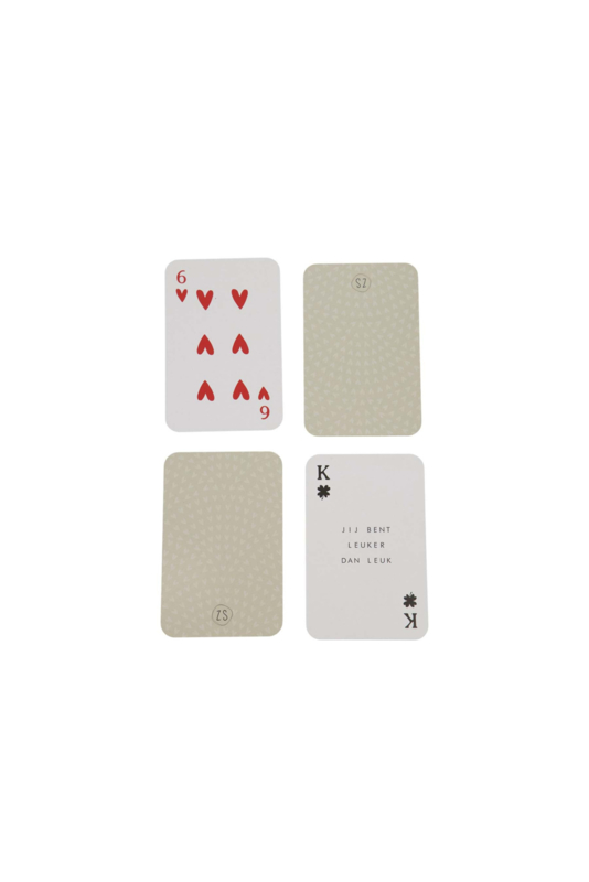 Het pakje is voorzien van een leuke print. Deze print vind je ook terug achter op de speelkaarten.