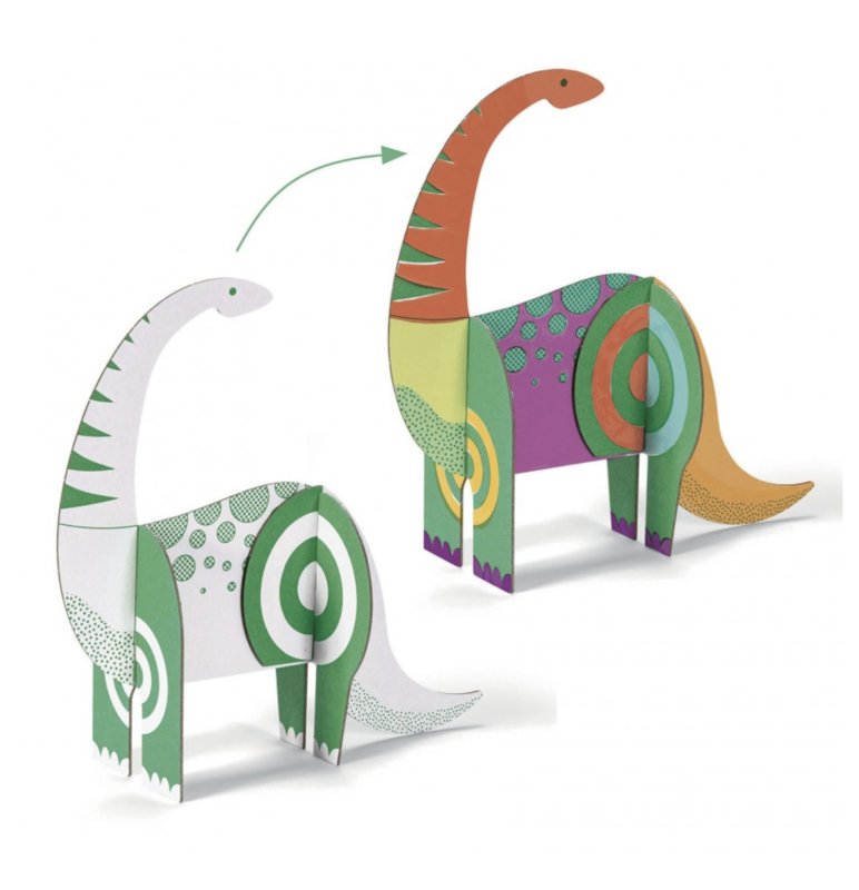 Artikelnummer: DJ08003Een creatieve set met grote kartonnen stukken die gekleurd en in elkaar gezet kunnen worden om heel grafische dinosaurussen te maken. Al het creatieve plezier van kleuren gecombineerd met de activiteit van het bouwen van voorwerpen in 3D. Voor uren van creatie en spel!