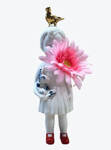 Deze porseleinen popjes, met hun glinsterende gouden details en rode schoentjes, dragen de onmiskenbare signatuur van Lammers&Lammers. Lieflijk, grappig en altijd met een knipoog, stralen ze pure persoonlijkheid uit.