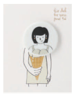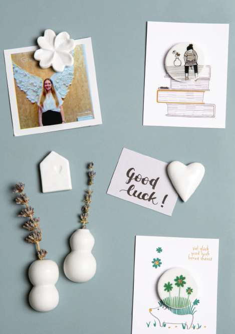 Op dit kleine kaartje staat een vrouw afgebeeld die relaxed in een koffiekopje. En wat zo leuk is? Het is een magneet.