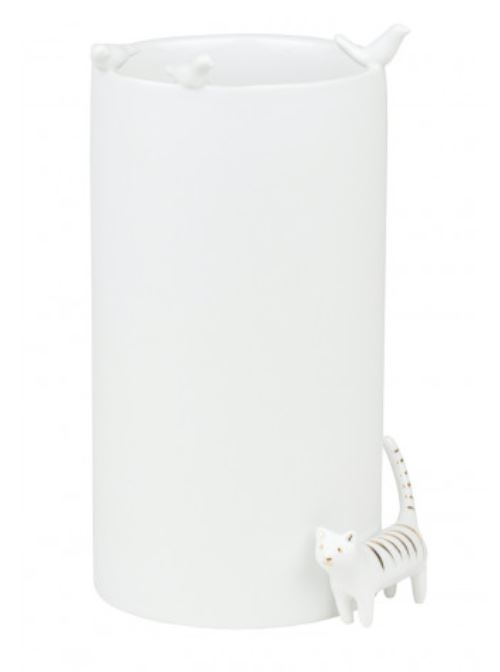 Räder Porcelain Vase Cat & Swarm of birds | Vaas kat met zwerm vogelsPorseleinen vaas met een poesje dat onder langs de rand loopt op zoek naar de vogeltjes die op de rand zitten.