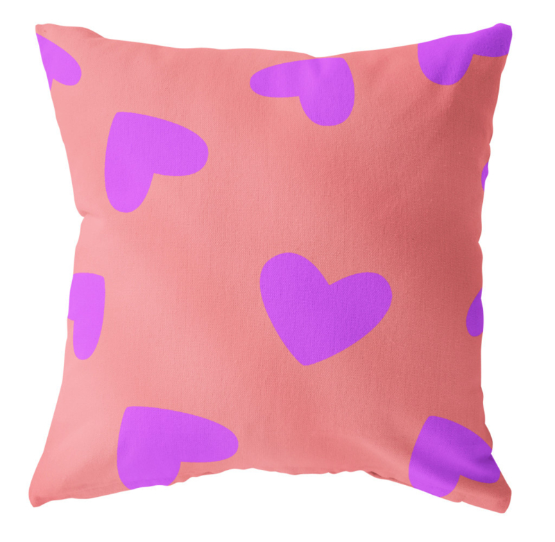 Buitenkussen "Hartjes" 60x40 cm | zalm paarsBuitenkussen met hartjes print in het zalm met paarse harten.