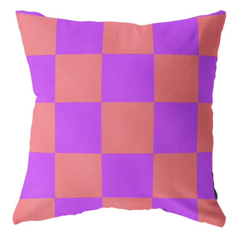 Buitenkussen "Geblokt" 60x40 cm | zalm paarsBuitenkussen met een geblokte print in het zalm met paars.