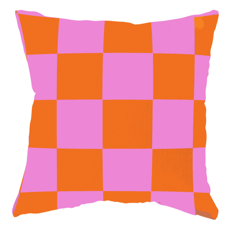 Buitenkussen "Geblokt" 60x40 cm | roze oranjeBuitenkussen in een blokjes print in het roze oranje.