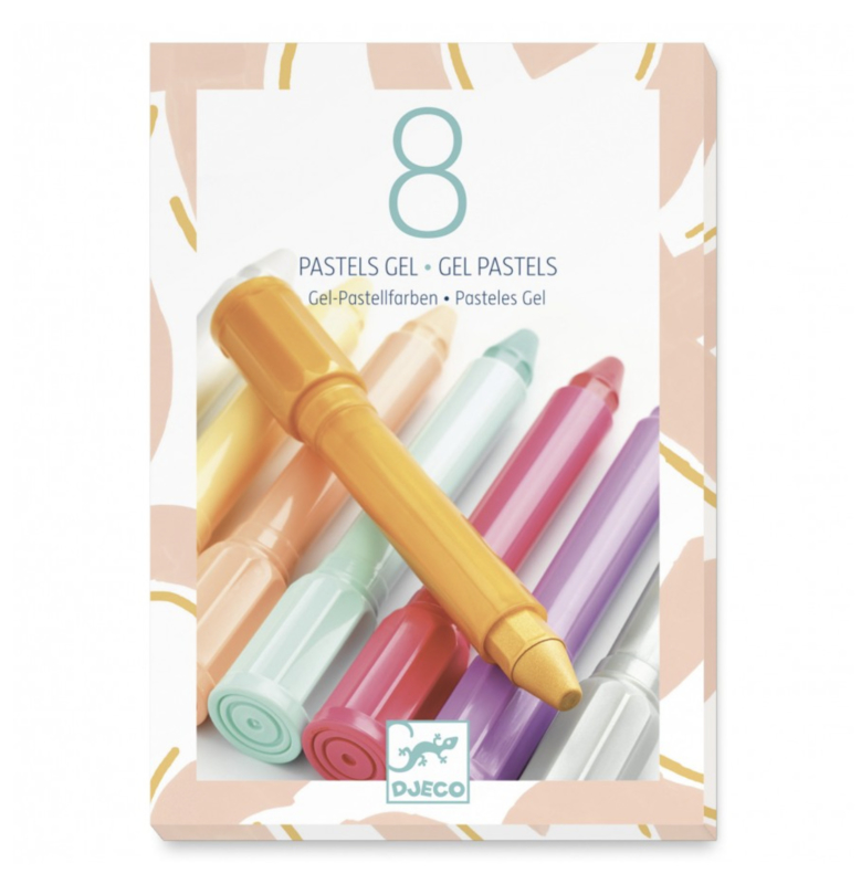 Djeco Penseelstiften "Pastel"Gel / wasco krijtjes van Djeco in 8 pastelkleuren.