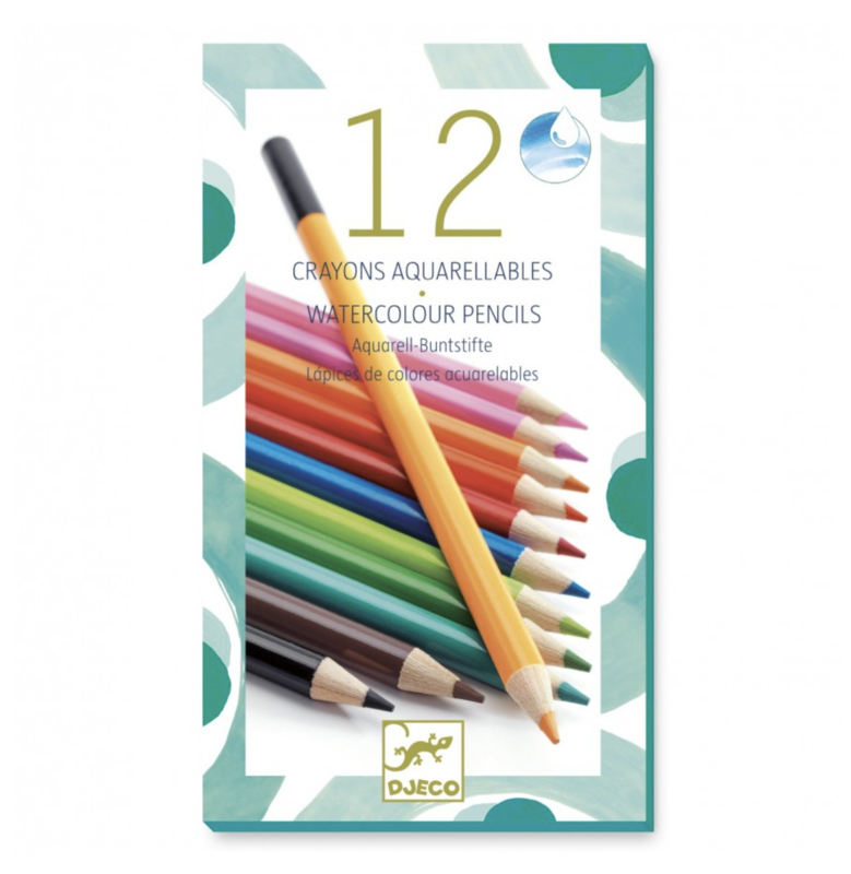Djeco Aquarelpotloden 12 stuksMaak de mooiste aquarel kunstwerkjes met deze set van 12 aquarel potloden in alle kleuren van de regenboog.