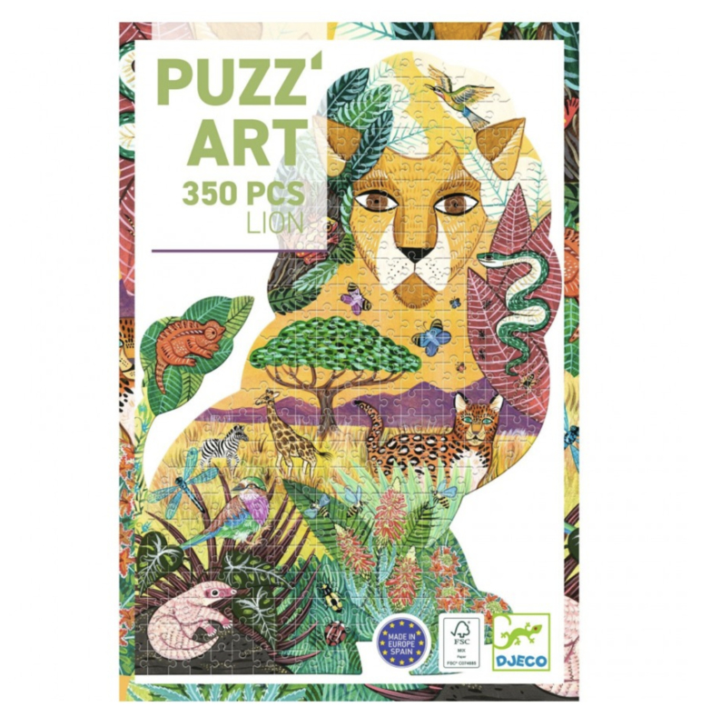 Djeco - Puzz art - LionDe Puzz Art Lion is een puzzel van 350 stukjes. Met een nieuwe vorm, zonder hoeken of kanten, wordt de hele kunst van het puzzelen op zijn kop gezet. Aan de binnenkant van deze grote puzzel in de vorm van een leeuw ontdek je een…